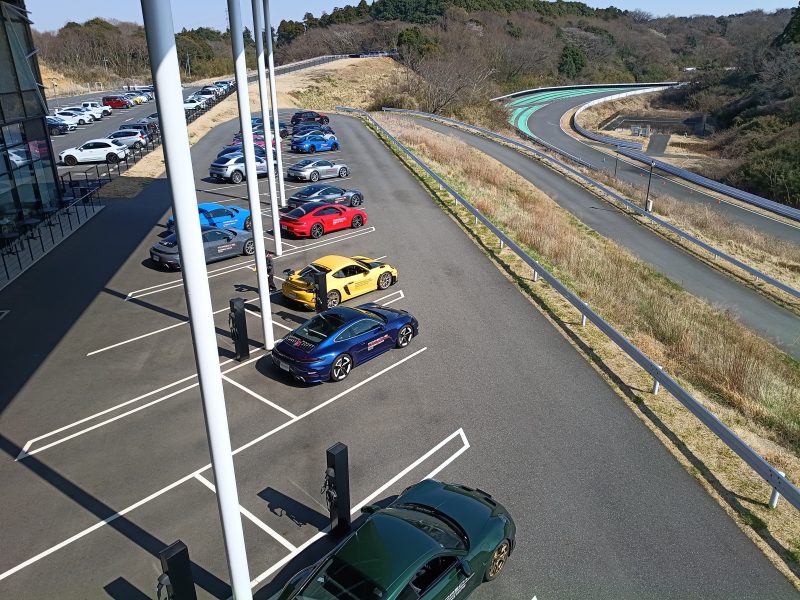 予約時間になると集合がかかり、いよいよテストコースに向かいます。こんなにポルシェが並んでいるのを見ると、それだけでテンション爆上がりします♪